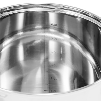 Garnek charakteryzuje się prostym kształtem i powierzchnią zewnętrzną o błyszczącym wykończeniu, dzięki czemu doskonale wpisze się w stylistykę większości kuchni. Wykonanie ze stali nierdzewnej gwarantuje, że jest w pełni bezpieczny dla zdrowia i neutralny dla żywości, nie wchodzi w reakcje z potrawami, dlatego bez obaw możemy wykorzystywać go do przygotowania posiłków. Gładka powierzchnia wewnętrzna garnka nie zatrzymuje zabrudzeń i zanieczyszczeń, dzięki czemu jest bardzo higieniczna i łatwa w czyszczeniu.