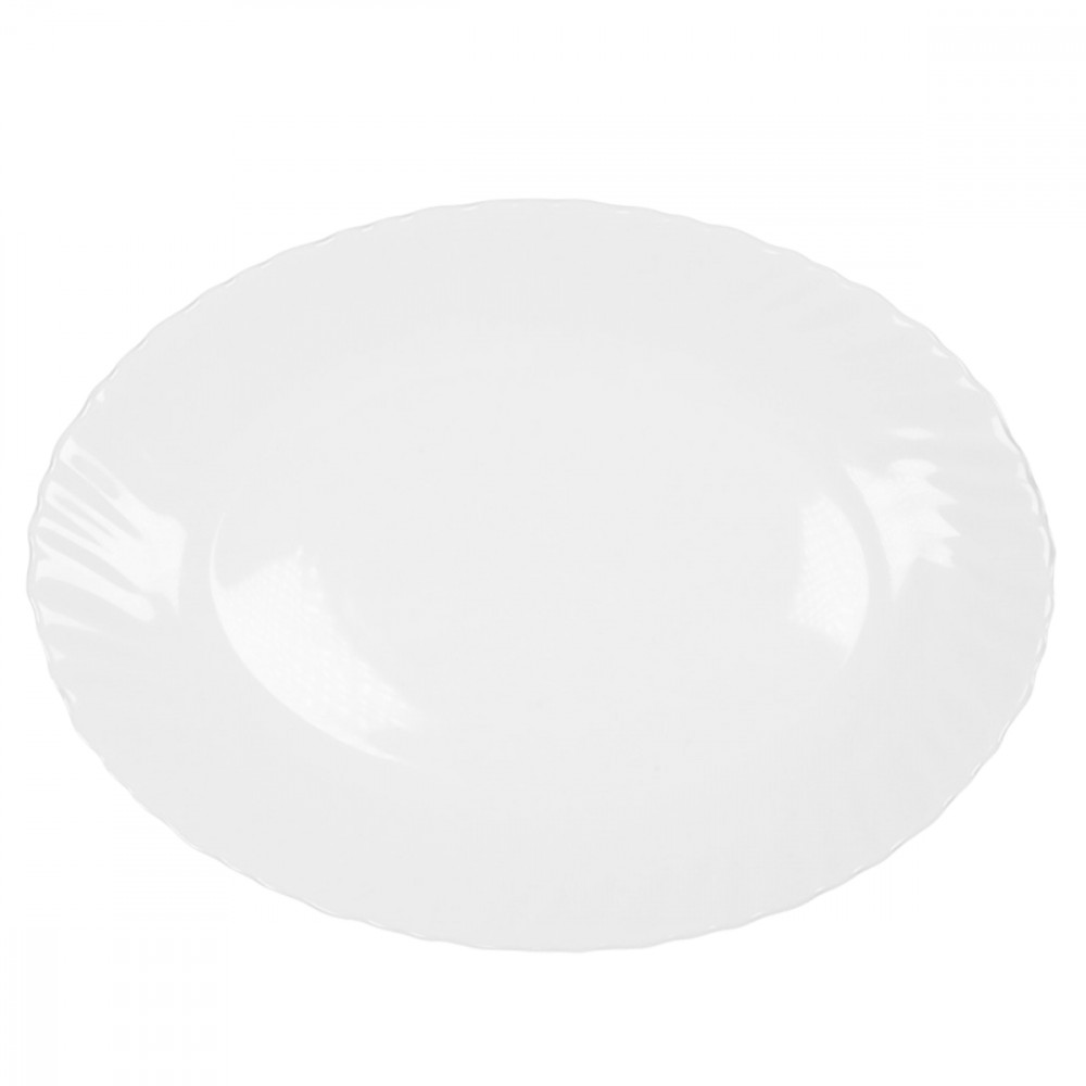Biały półmisek 30 cm z karbowanym zdobieniem rantu. Wykonany z białego szkła hartowanego.