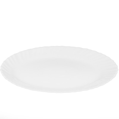 Biały półmisek 20,5 cm z karbowanym zdobieniem rantu. Wykonany z białego szkła hartowanego.