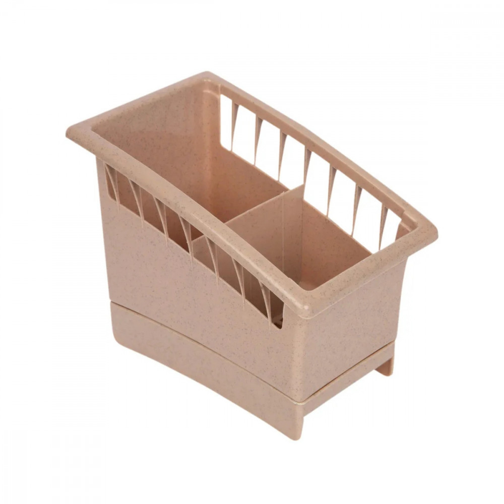 Plastikowy, 2-komorowy ociekacz do sztućców marki Lamela w kolorze ciemnego beżu z drobinkami. Wymiary 17x10,5x13,5 cm.