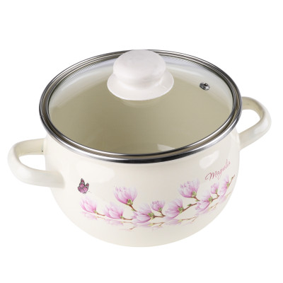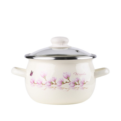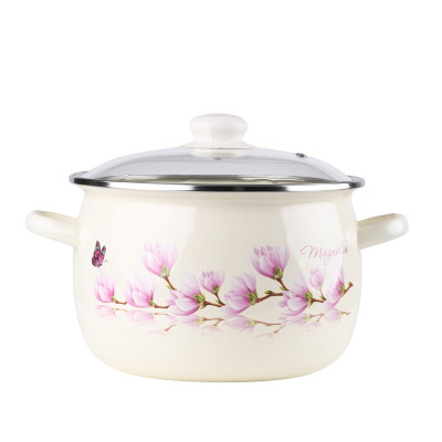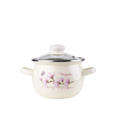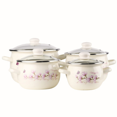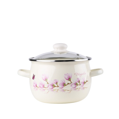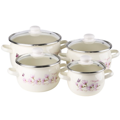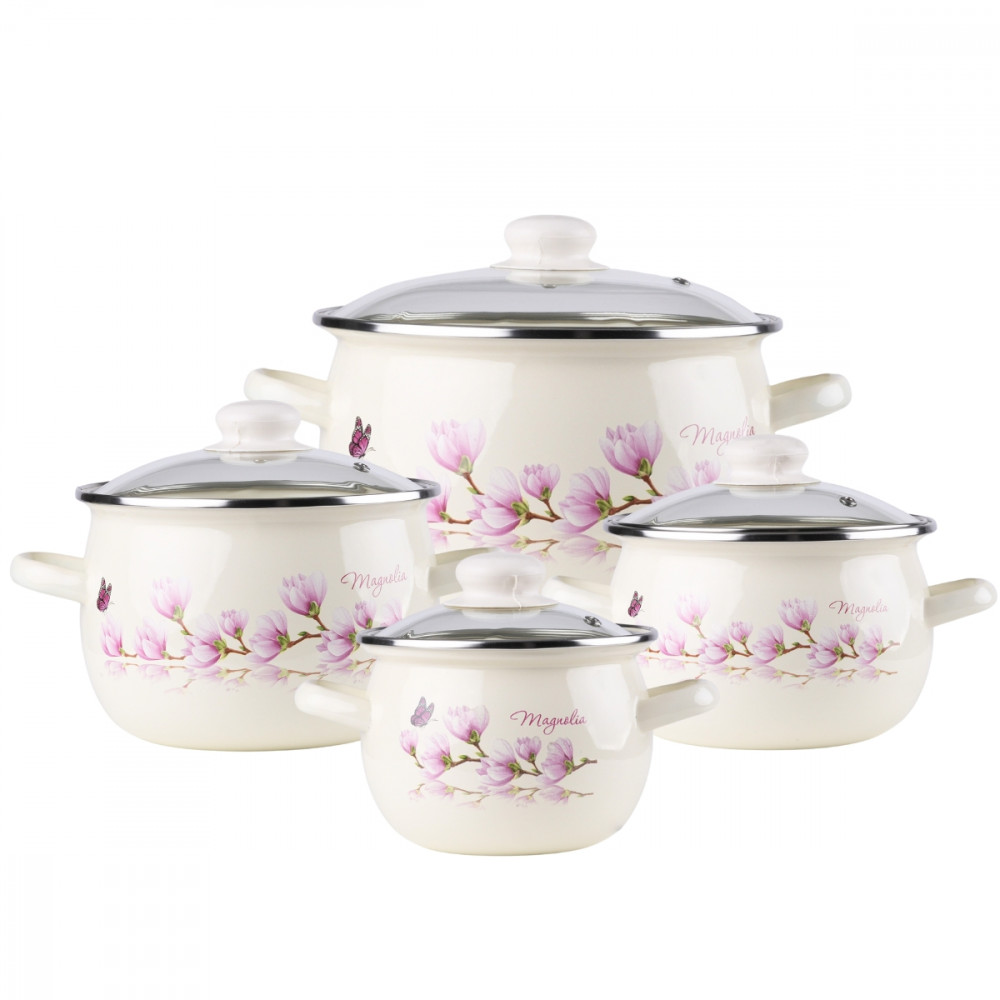 Komplet garnków emaliowanych MAGNOLIA 1,5l/2,5l/3,5l/5l - kompletny zestaw garnków do gotowania w pięknej dekoracji