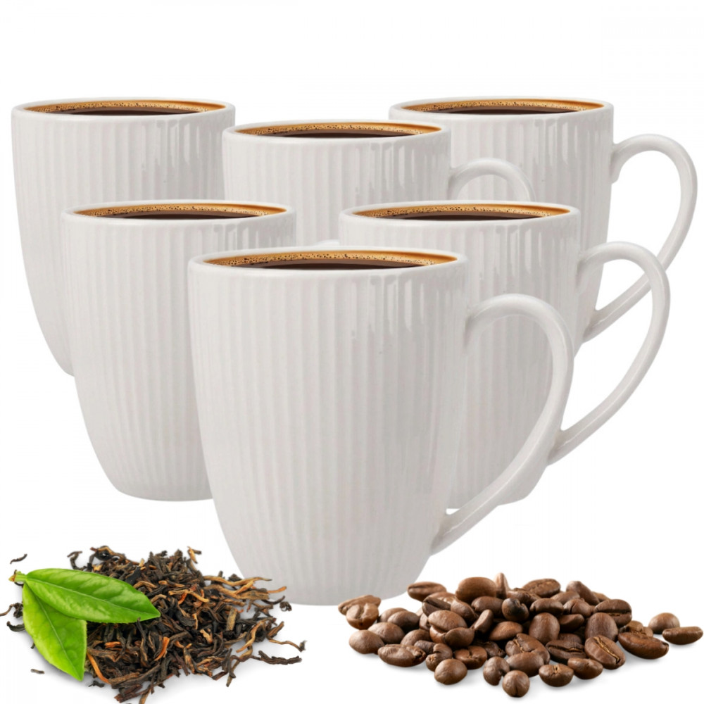 Zestaw składa się z 6 kubków porcelanowych o pojemności 330 ml, dekorowanych tłoczeniem pionowych żłobień. Są zarówno praktyczne jak i eleganckie Delikatny, kremowy odcień porcelany doskonale podkreśla ich nieregularną powierzchnię. Będą idealne do serwowania kawy, herbaty jaki i innych gorących napojów, zarówno na co dzień jak i podczas rodzinnego spotkania czy niewielkiego przyjęcia. Wpiszą się w stylistykę większości jadalni.