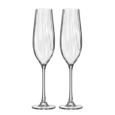 Zestaw 2 kieliszków do szampana 260 ml z serii COLUMBA OPTIC, czeskiej marki CRYSTAL BOHEMIA. Wyróżniają się smukłym kształtem i eleganckim, subtelnym tłoczeniem na powierzchni w postaci pionowych wypukłości przepięknie załamujących światło. Dzięki wysokiej jakości wykonania i ponadczasowej formie będą doskonałym wyborem zarówno na uroczyste okazje, jak i do celebracji wyjątkowych chwil we dwoje.