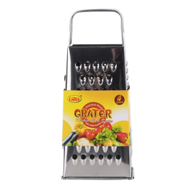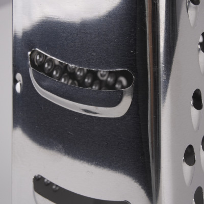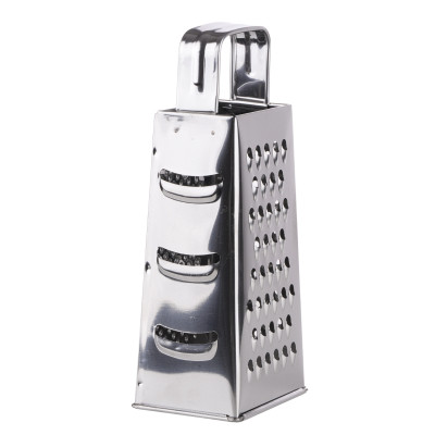 Czteroboczna tarka do warzyw i owoców ze stali nierdzewnej z poręcznym uchwytem.