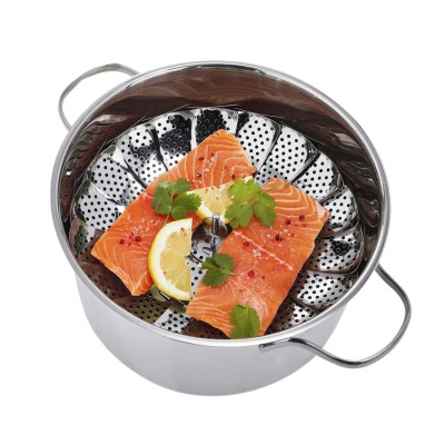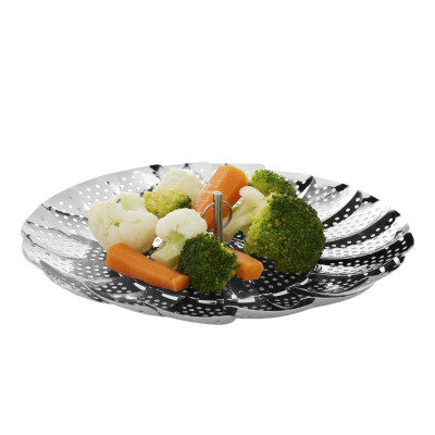 Składany wkład stalowy 28 cm, który pozwoli przekształcić zwykły garnek w naczynie do gotowania na parze - wystarczy ustawić go na dnie garnka, by w szybki sposób zyskał funkcjonalność parowaru.