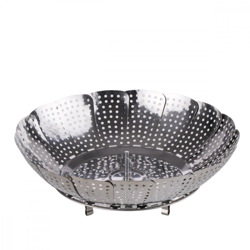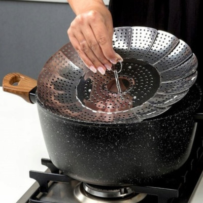 Składany wkład stalowy 24 cm, który pozwoli przekształcić zwykły garnek w naczynie do gotowania na parze - wystarczy ustawić go na dnie garnka, by w szybki sposób zyskał funkcjonalność parowaru.