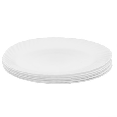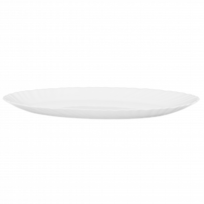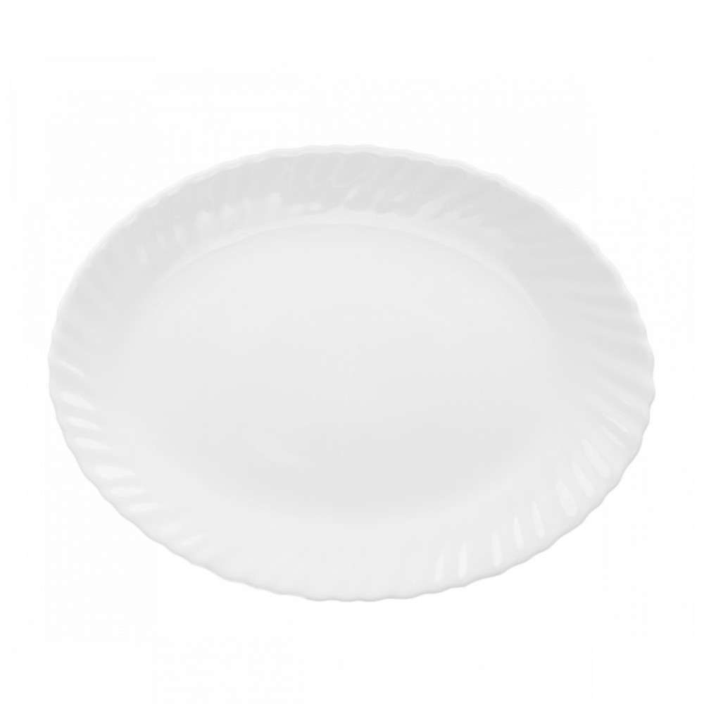 Biały półmisek 25 cm z karbowanym zdobieniem rantu. Wykonany z białego szkła hartowanego.