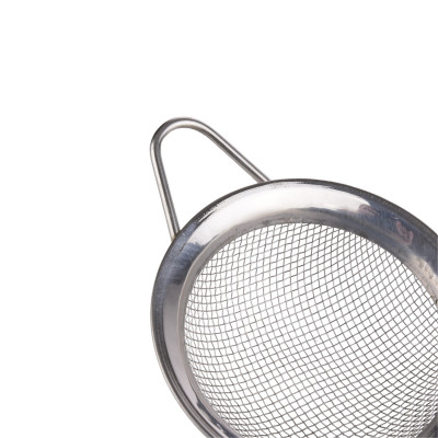 Sitko posiada stalowe oczka o gęstym splocie, które zatrzymają na nim przecedzane produkty, grudki czy ewentualne zanieczyszczenia. Długa rączka umożliwia wygodne trzymanie go w dłoni. Niewielka wypustka po przeciwnej stronie rączki umożliwia oparcie sitka o krawędź miski, garnka czy innego naczynia, co pozwoli zwolnić ręce i ułatwi odciekanie.
