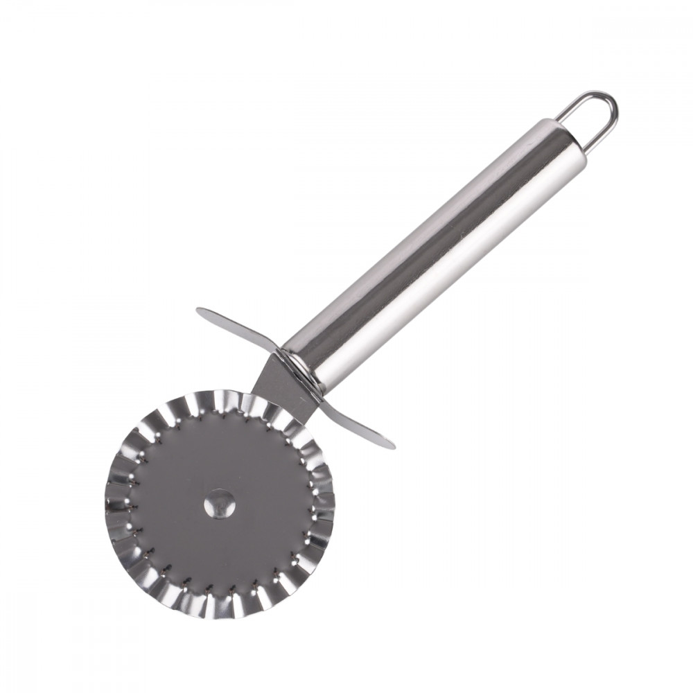Radełko do ciasta o karbowanej krawędzi wykonane z lekkiej stali nierdzewnej. Pomoże w dzieleniu ciasta na pierogi, ravioli, uszka czy faworki, można go także wykorzystać do krojenia upieczonej pizzy czy tarty. Dzięki niemu szybko i bez wysiłku przygotujesz ulubione przysmaki.