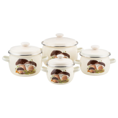 Komplet 4 garnków emaliowanych GRZYBKI 1,5l/2,5l/3,5l/5l