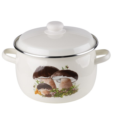 Zestaw 4 garnków emaliowanych z pokrywką z serii Grzybki o pojemnościach: 1,5l, 2,5l, 3,5l i 5l. Wykonane ze stali węglowej pokrytej z zewnątrz i wewnątrz kilkoma warstwami szklistej emalii, która działa jak tarcza - nie wchodzi w reakcję z żywnością, nie zmienia jej smaku czy zapachu oraz posiada antyalergiczne właściwości, dlatego polecana jest dla dzieci i alergików. Emalia jest także bardzo wytrzymała na zarysowania, ścieranie i wysokie temperatury a dzięki gładkości powierzchni bardzo higieniczna - nie zatrzymuje zabrudzeń i drobnoustrojów na powierzchni, co wpływa na łatwość czyszczenia. W garnkach emaliowanych spokojnie można gotować i przechowywać jedzenie bez obaw o zdrowie i walory smakowe.
