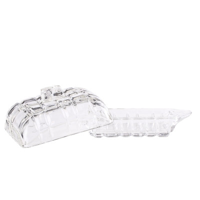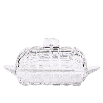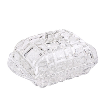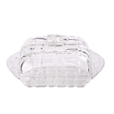 Maselnica szklana z pokrywką Karo tłoczona 17x10,5x8 cm