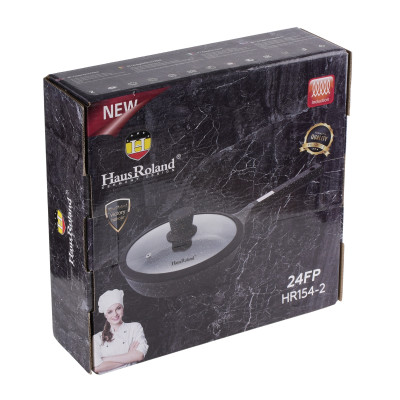 Patelnia z pokrywką szklaną 24 cm marki Haus Roland, pokryta klasyczną powłoką nieprzywierającą non‑stick o nakrapianym wzorze. Wykonana z aluminium. Nienagrzewająca się rączka umożliwia bezpieczne użytkowanie. Przeznaczona do smażenia na indukcji, gazie i kuchence elektrycznej.
