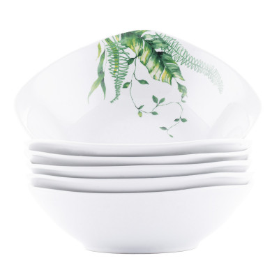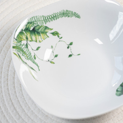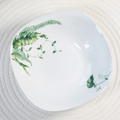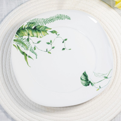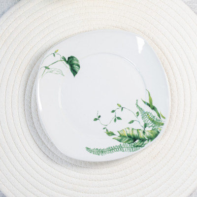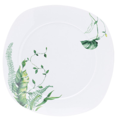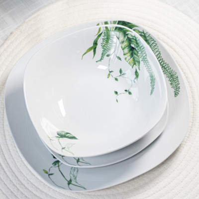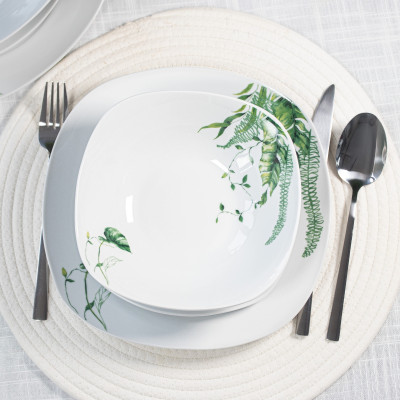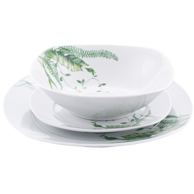 Komplet obiadowy dla 6 osób zestaw talerzy kwadratowy PRIMA DECO Liście paproci 18-elementów