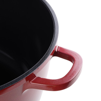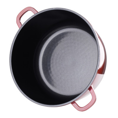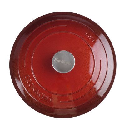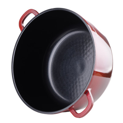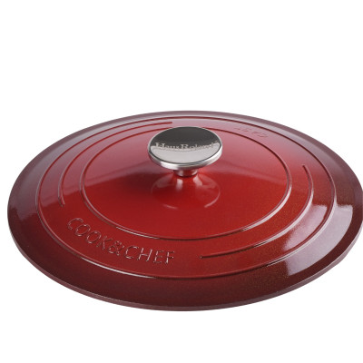 To co przyciąga uwagę na pierwszy rzut oka to oryginalny wygląd garnka, przypominający kształtem naczynie żeliwne i piękny kolor - czerwona powierzchnia zewnętrzna z delikatnym gradientem i błyszczące wykończenie sprawiają, że garnek będzie świetnie wyglądać zarówno na kuchence, jak i na stole podczas serwowania. Dopasowana pokrywka wykonana z tego samego materiału co garnek chroni potrawy przed utratą ciepła oraz wilgoci podczas gotowania, dzięki czemu pozostają soczyste i pełne aromatów. Wyposażona w metalową gałkę łatwą do chwytania i odporną na wysokie temperatury. To praktyczny detal, która pozwala na łatwe podnoszenie pokrywki.