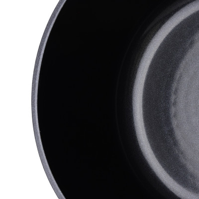 Garnek usprawnia codzienne gotowanie. Jego wnętrze pokrywa ciemna powłoka nieprzywierająca, która ogranicza ryzyko przypaleń oraz pozwala smażyć i dusić niczym w patelni - z mniejszą ilością tłuszczu. Zupy, sosy czy dania jednogarnkowe nie przywierają do dna a mycie zajmuje tylko chwilę, bez szorowania i moczenia. Aluminiowy korpus świetnie przewodzi ciepło i równomiernie rozprowadza je po całym naczyniu, dzięki czemu garnek szybko się nagrzewa, co skraca czas przyrządzania potraw oraz pomaga oszczędzać energię. Ferromagnetyczne dno kompatybilne jest z płytą indukcyjną oraz pozostałymi typami kuchenek: gazową, ceramiczną, elektryczną i halogenową.