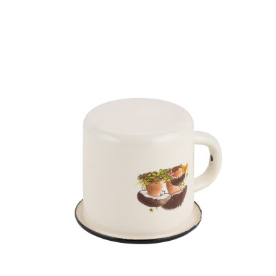 Kubek emaliowany z serii Grzybki o pojemności 400 ml. Wykonany z masywnej stali pokrytej z zewnątrz i wewnątrz kilkoma warstwami szklistej emalii w kolorze kremowym, która nie wchodzi w reakcję z żywnością, nie zmienia jej smaku czy zapachu oraz posiada antyalergiczne właściwości, dlatego polecana jest dla dzieci i alergików. Emalia jest także bardzo wytrzymała na zarysowania, ścieranie i wysokie temperatury a dzięki gładkości powierzchni bardzo higieniczna - nie zatrzymuje zabrudzeń i drobnoustrojów na powierzchni, co wpływa na łatwość czyszczenia.