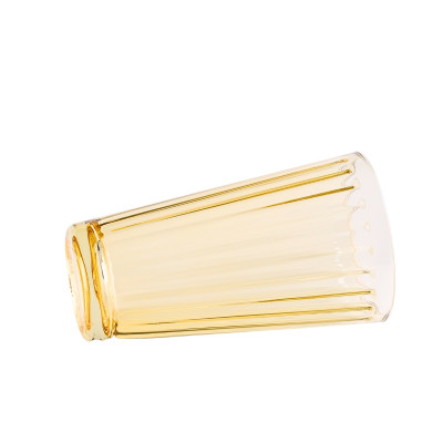Wysoka szklanka ryflowana 400 ml z żółtego szkła. Idealna do serwowania soków, wody, zimnych i letnich napojów oraz efektownych koktajli – na co dzień i na przyjęcia. Posiada strukturę pionowych prążków, co nadaje jej ozdobnego akcentu.