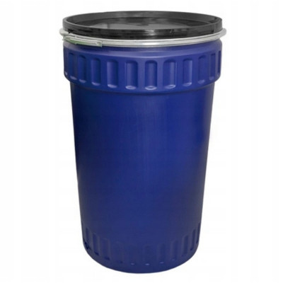 Beczka plastikowa stożkowa o pojemności 220l. Posiada bezgwintowe wieko i metalową obejmę dociskową, zabezpieczające zawartość przed kontaktem z zewnątrz oraz plastikowy kranik, który ułatwia jej opróżnienie. Nie posiada uszczelki. Beczka wykonana została z wytrzymałego tworzywa sztucznego, dopuszczonego do kontaktu z żywnością.