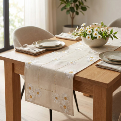 Bieżnik z motywem stokrotek - powiew wiosny w Twojej jadalni