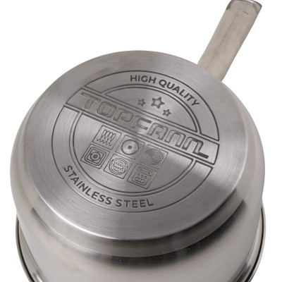Lekki rondel stalowy TOPFANN o pojemności 2,5l ze szklaną pokrywką, wewnętrzną miarką i bezpieczną, nitowaną rączką. Uniwersalne naczynie do podgrzewania potraw i sosów przystosowane do pracy na wszystkich typach kuchenek, w tym płytach indukcyjnych.