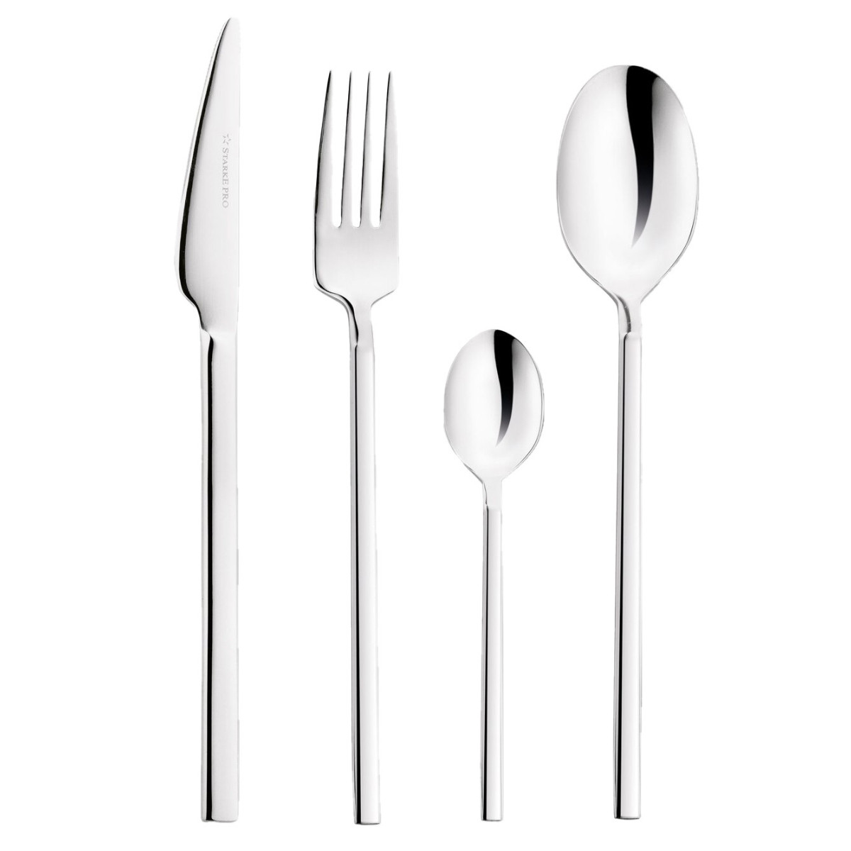 Kompletny zestaw sztućców dla 6 osób składający się z 24 elementów. Klasyczna zastawa stołowa wykonana z wytrzymałej stali nierdzewnej o błyszczącym wykończeniu, wyróżniająca się prostą, minimalistyczną formą i odpowiednim wyważeniem każdego z elementów.