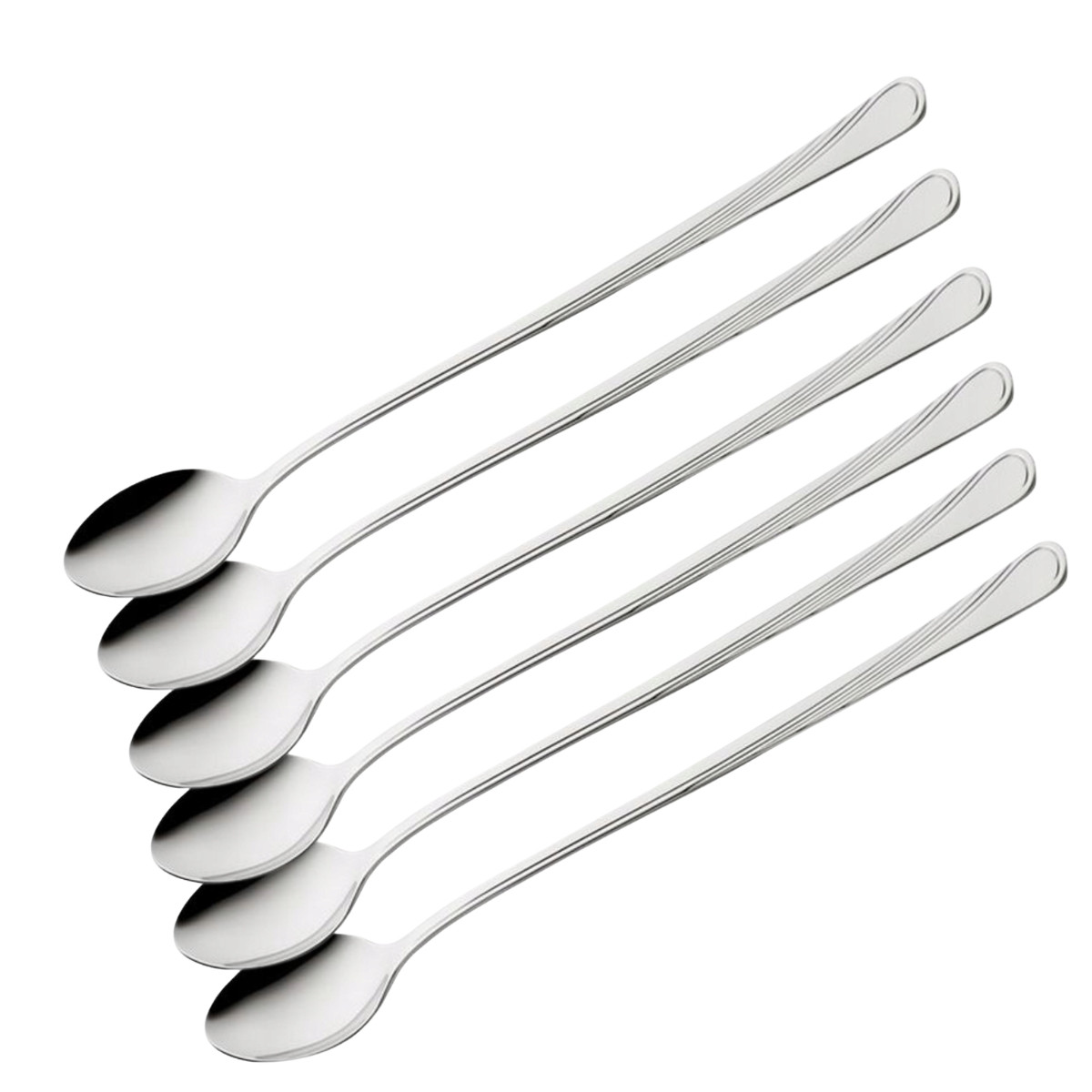Komplet 6 długich łyżeczek koktajlowych z linii Violino przeznaczonych do serwowania kawy latte, deserów i lodów. Zestaw wykonany z wytrzymałej stali nierdzewnej 18/10, charakteryzujący się lustrzanym połyskiem z eleganckim satynowanym zdobieniem falek na rękojeści oraz wydłużonym profilem, ułatwiającym sięganie do dna wysokich szklanek i pucharów.